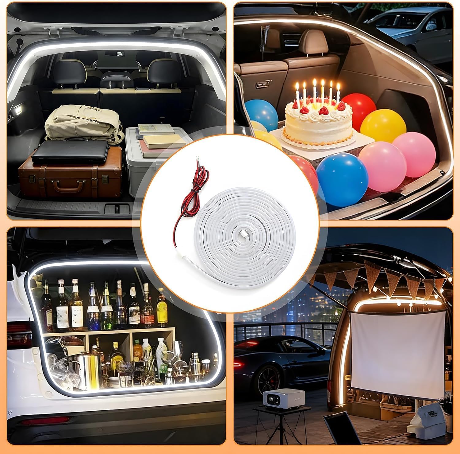 Uniwersalność: 4 metry długości pozwalają na dokładne oświetlenie obwodu w samochodach typu kombi, SUV, sedan czy hatchback.
