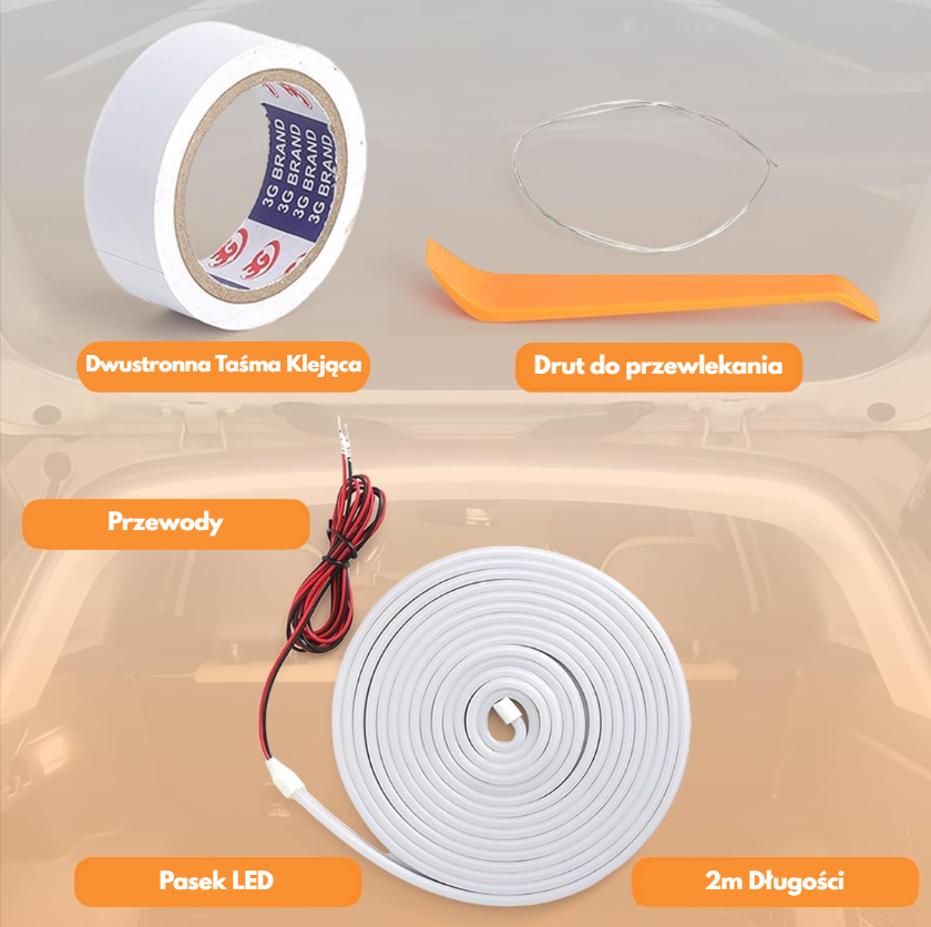 Trunklyy LED 4m - Kompletny zestaw do zamontowania w bagażniku